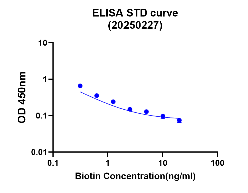 生物素檢測(cè)試劑(CSB-E16209)檢測(cè)血清、血漿樣本中的Biotin含量。Biotin即生物素,它是水溶性維生素B族成員。作為羧化酶輔酶參與體內(nèi)多種重要代謝反應(yīng)。研究上,其常作為標(biāo)記物用于分子生物學(xué)和生物醫(yī)學(xué),如蛋白質(zhì)純化、免疫檢測(cè)等,能與抗生物素蛋白特異結(jié)合,助力相關(guān)機(jī)制研究與應(yīng)用。試劑盒檢測(cè)范圍為12.5 pg/mL-200 pg/mL,靈敏度為4.986 pg/mL。適用于科研領(lǐng)域,包括但不限于膳食營養(yǎng)研究、代謝性疾病動(dòng)物模型分析以及生物素相關(guān)分子機(jī)制探索,幫助研究者精準(zhǔn)量化微量生物素水平。本品僅用于科研,不用于臨床診斷,產(chǎn)品具體參數(shù)及操作步驟詳見產(chǎn)品說明書。
