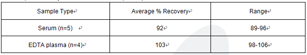 The recovery of bovine PTX3  spiked to levels throughout the range of the assay in various matrices was evaluated. Samples were diluted prior to assay as directed in the Sample Preparation section.
