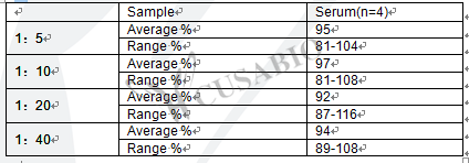 Three samples of known concentration were tested twenty times on one plate to assess.Inter-assay Precision (Precision between assays):CV%<10%Three samples of known concentration were tested in twenty assays to assess.