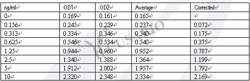 • Two vials lyophilized standard --- Dilute a bottle of the standard at dilution series, read the OD values, and then draw a standard curve.