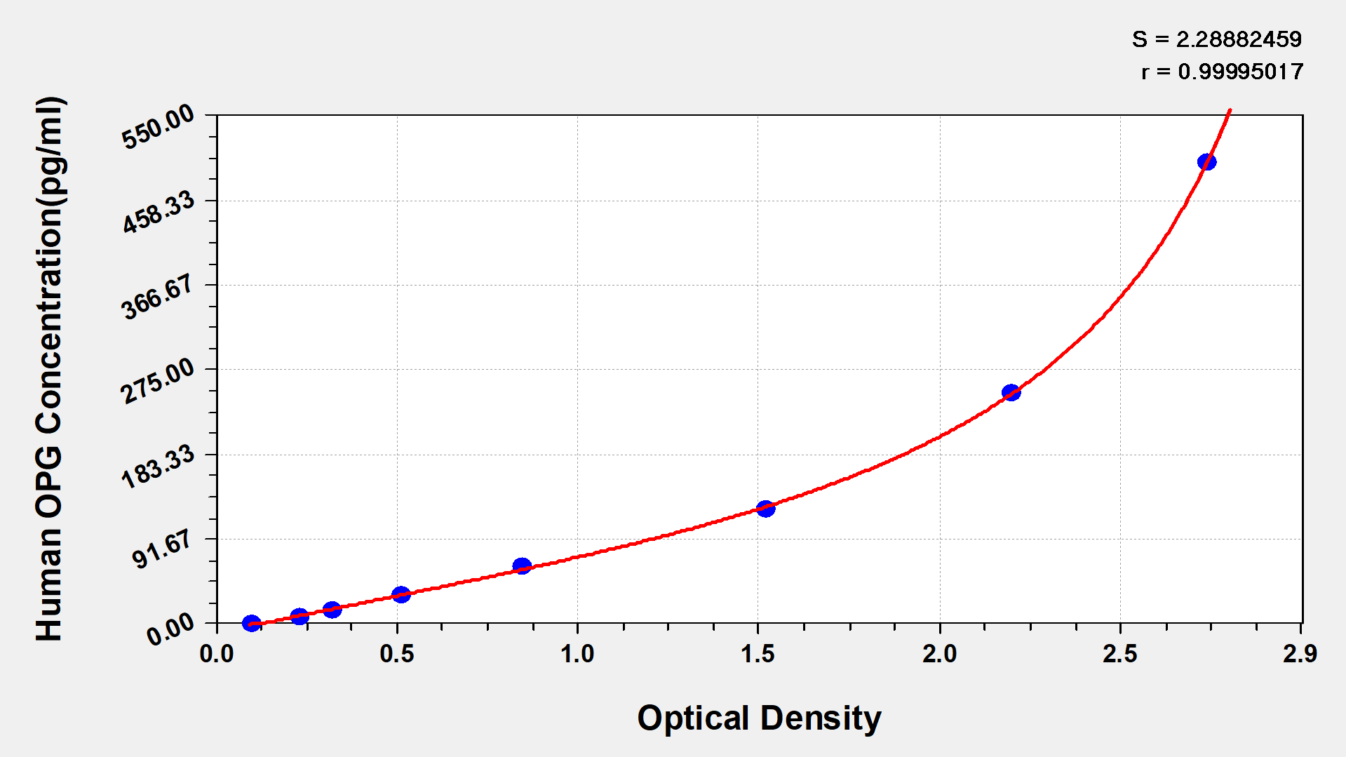 To assess the linearity of the assay, samples were spiked with high concentrations of human OPG in various matrices and diluted with the Sample Diluent to produce samples with values within the dynamic range of the assay.