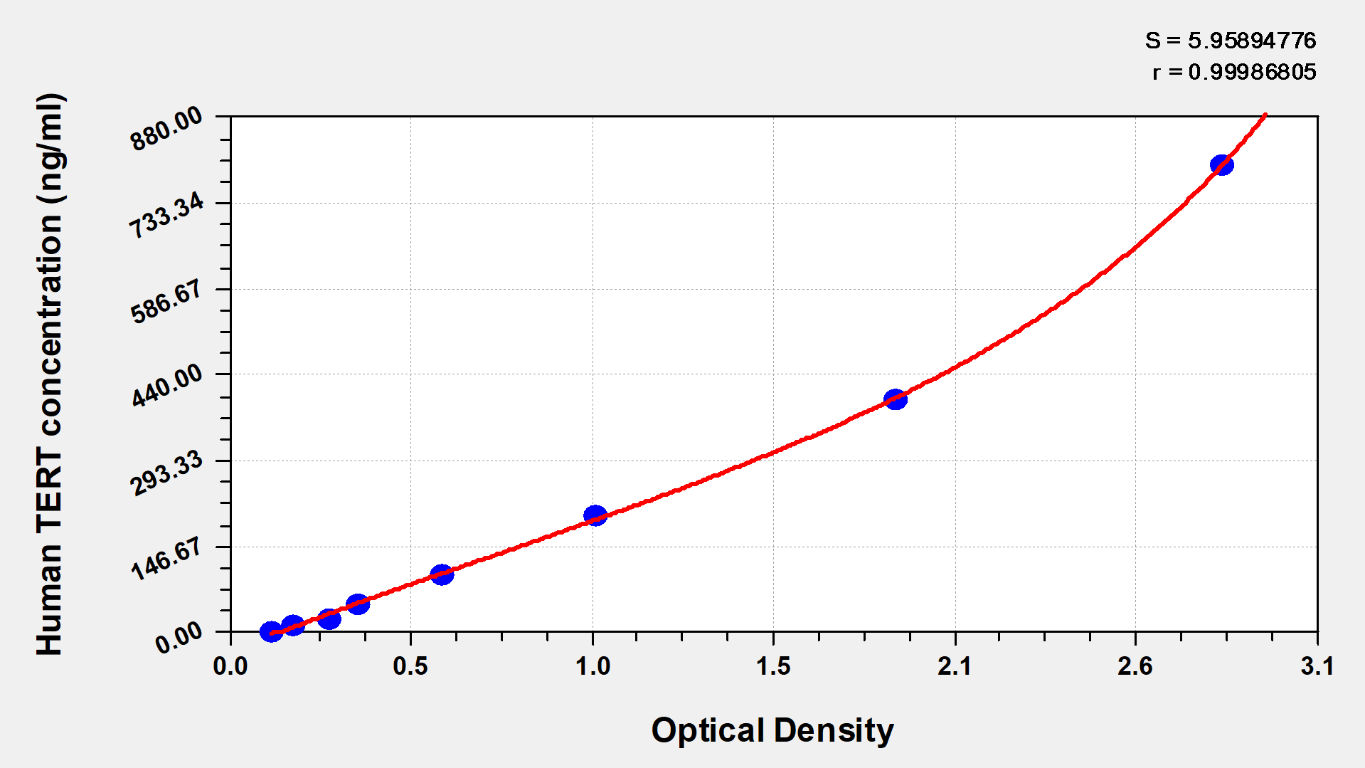 To assess the linearity of the assay, samples were spiked with high concentrations of human TERT in various matrices and diluted with the Sample Diluent to produce samples with values within the dynamic range of the assay. |