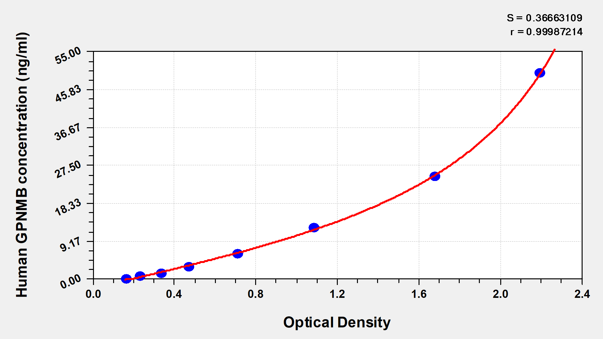 To assess the linearity of the assay, samples were spiked with high concentrations of human GPNMB in various matrices and diluted with the Sample Diluent to produce samples with values within the dynamic range of the assay.