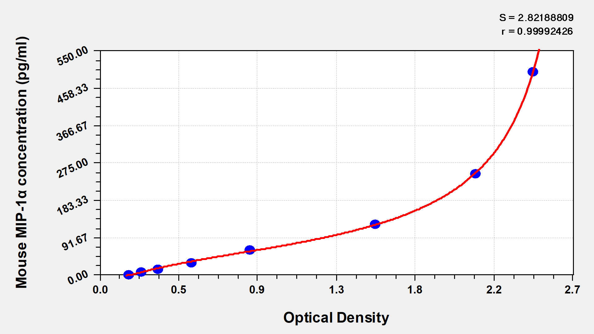 To assess the linearity of the assay, samples were spiked with high concentrations of mouse MIP-1α in various matrices and diluted with the Sample Diluent to produce samples with values within the dynamic range of the assay.