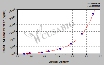 To assess the linearity of the assay, samples were spiked with high concentrations of rabbit TAT in various matrices and diluted with the Sample Diluent to produce samples with values within the dynamic range of the assay.