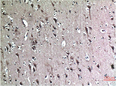 • Immunohistochemical analysis of paraffin-embedded Human Brain Tissue using Beclin-1 Mouse mAb diluted at 1:200.