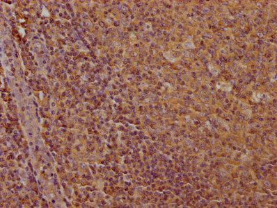 • IHC image of CSB-MA004888A0m diluted at 1:100 and staining in paraffin-embedded human spleen tissue performed on a Leica BondTM system. After dewaxing and hydration, antigen retrieval was mediated by high pressure in a citrate buffer (pH 6.0). Section was blocked with 10% normal goat serum 30min at RT. Then primary antibody (1% BSA) was incubated at 4°C overnight. The primary is detected by a biotinylated secondary antibody and visualized using an HRP conjugated SP system.