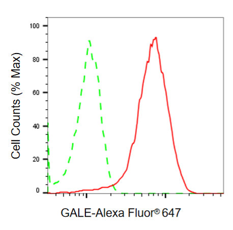 Flow cytometric analysis of GALE expression in HepG2 cells using GALE antibody. Green, isotype control; red, GALE.