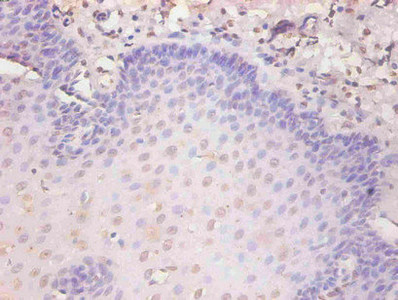 Immunohistochemical of paraffin-embedded human esophageal tissue using CSB-MA0125342A0m at dilution of 1:200
