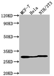 Positive WB detected in: MCF-7 whole cell lysate, Hela whole cell lysate, NIH/3T3 whole cell lysate