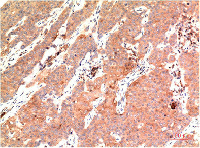 • Immunohistochemical analysis of paraffin-embedded Human Breast Carcinoma Tissue using Epsilon Tubulin Mouse mAb diluted at 1:200.