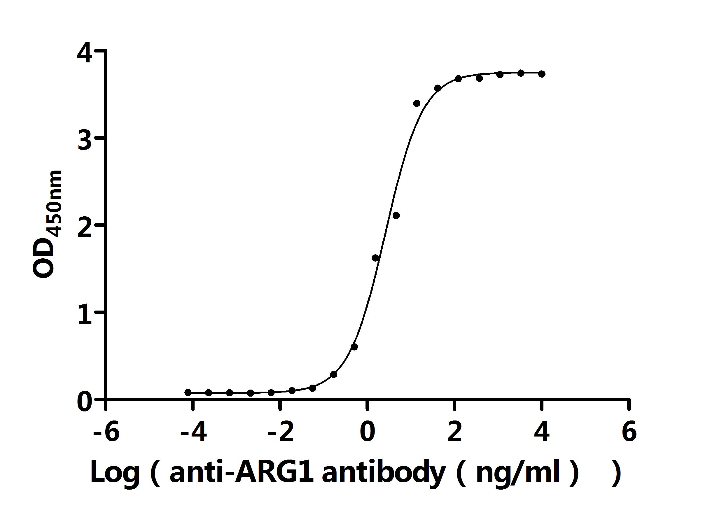 ①Measured by its binding ability in a functional ELISA. Immobilized Human ARG1 at 2 μg/mL can bind Anti-ARG1 recombinant antibody (CSB-RA002005MA1HU). The EC50 is 2.291-3.018 ng/mL.