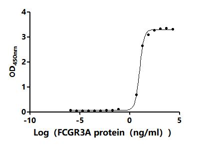 生物活性:Measured?by?its?binding?ability?in?a?functional?ELISA.?Immobilized Anti-FCGR3A antibody (CSB-RA008543MA2HU)?at?2?μg/ml?can?bind?Biotinylated?Human?FCGR3A.?The?EC50?is?7.814-12.17 ng/ml.