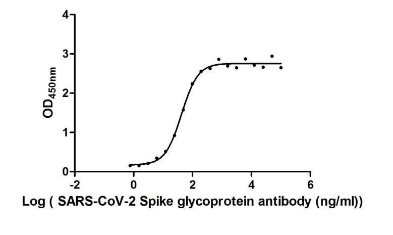 Measured by its binding ability in a functional ELISA. Immobilized SARS-CoV-2-S at 2 μg/ml can bind SARS-CoV-2-S Antibody (CSB-RA33245A1GMY), the EC50 of SARS-CoV-2-S protein is 36.79-48.87 ng/ml Biological Activity Assay