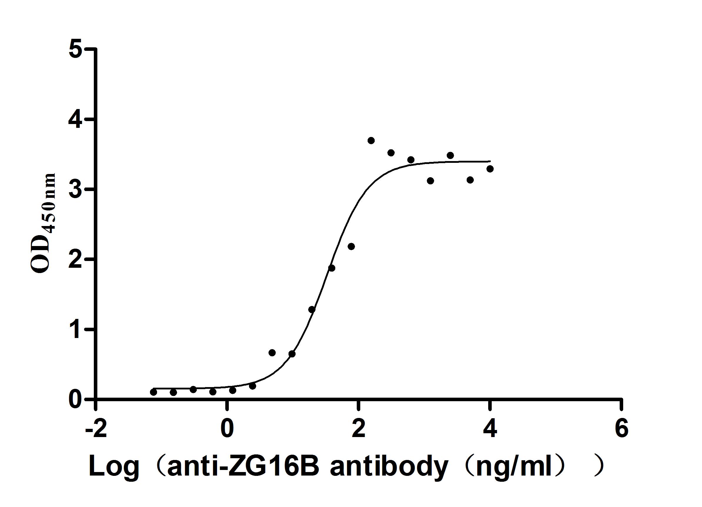 Measured by its binding ability in a functional ELISA. Immobilized Human ZG16B at 2 μg/ml can bind Anti-ZG16B recombinant antibody (CSB-RA836195MA1HU), the EC50 is 24.13-46.04 ng/mL. Biological Activity Assay -