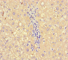 Immunohistochemistry of paraffin-embedded human liver tissue using CSB-PA14579A0Rb at dilution of 1:100