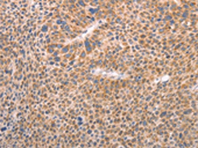 The image on the left is immunohistochemistry of paraffin-embedded Human lung cancer tissue using CSB-PA919003(AASDHPPT Antibody) at dilution 1/30, on the right is treated with fusion protein. (Original magnification: ×200)