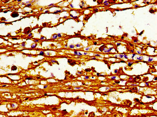 Immunohistochemistry of paraffin-embedded human melanoma using CSB-PA001050LA01HU at dilution of 1:100