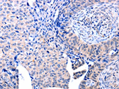The image on the left is immunohistochemistry of paraffin-embedded Human cervical cancer tissue using CSB-PA883300(ACAD10 Antibody) at dilution 1/10, on the right is treated with fusion protein. (Original magnification: ×200)