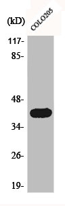 • Western Blot analysis of COLO205 cells using Actin α3 Polyclonal Antibody