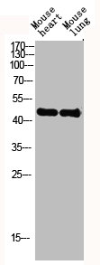 • Western Blot analysis of mouse-heart mouse-lung cells using Actin α3 Polyclonal Antibody