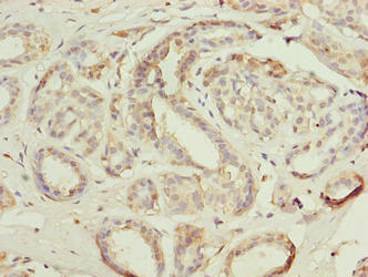 • Immunohistochemistry of paraffin-embedded human breast cancer using CSB-PA887982LA01HU at dilution of 1:100