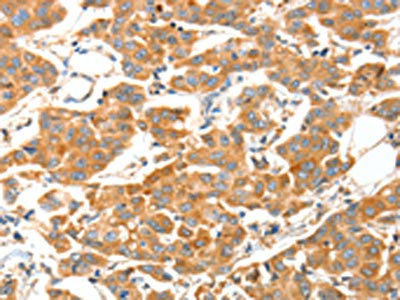 The image on the left is immunohistochemistry of paraffin-embedded Human breast cancer tissue using CSB-PA903364(ADAMTS18 Antibody) at dilution 1/30, on the right is treated with fusion protein. (Original magnification: ×200)