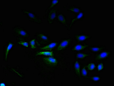 • Immunofluorescent analysis of Hela cells using CSB-PA872541LA01HU at dilution of 1:100 and Alexa Fluor 488-congugated AffiniPure Goat Anti-Rabbit IgG(H+L)