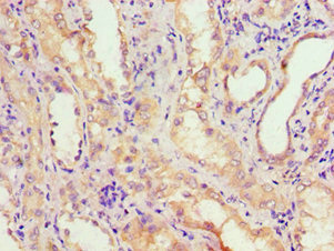 Immunohistochemistry of paraffin-embedded human kidney tissue using CSB-PA001356ESR1HU at dilution of 1:100