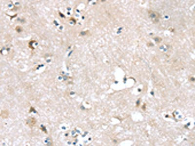 The image on the left is immunohistochemistry of paraffin-embedded Human brain tissue using CSB-PA831980(ADRB3 Antibody) at dilution 1/25, on the right is treated with synthetic peptide. (Original magnification: ×200)
