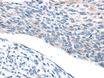 The image on the left is immunohistochemistry of paraffin-embedded Human esophagus cancer tissue using CSB-PA831980(ADRB3 Antibody) at dilution 1/25, on the right is treated with synthetic peptide. (Original magnification: ×200)