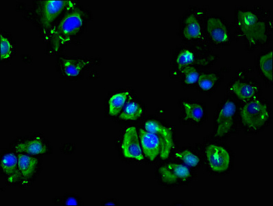• Immunofluorescent analysis of MCF-7 cells using CSB-PA001393LA01HU at dilution of 1:100 and Alexa Fluor 488-congugated AffiniPure Goat Anti-Rabbit IgG(H+L)