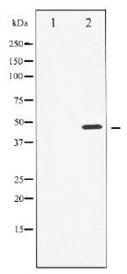 • Western blot analysis of Cyclin E1 expression in Paclitaxel treated HeLa whole cell lysates, The lane on the left is treated with the antigen-specific peptide.