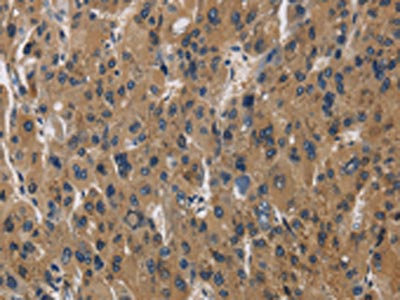 The image is immunohistochemistry of paraffin-embedded Human liver cancer tissue using CSB-PA066696(AGER Antibody) at dilution 1/70. (Original magnification: ×200)