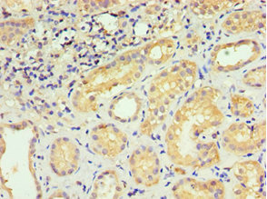 • Immunohistochemistry of paraffin-embedded human kidney tissue using CSB-PA613265ESR1HU at dilution of 1:100