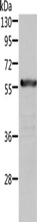 Gel: 10%SDS-PAGE, Lysate: 40 μg, Lane: Rat kidney tissue, Primary antibody: CSB-PA925196(ALDH6A1 Antibody) at dilution 1/450, Secondary antibody: Goat anti rabbit IgG at 1/8000 dilution, Exposure time: 30 seconds