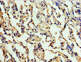 • Immunohistochemistry of paraffin-embedded human lung tissue using CSB-PA887118ESR1HU at dilution of 1:100