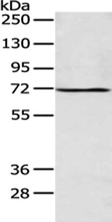 Gel: 8%SDS-PAGE, Lysate: 40 μg, Lane: Human fetal liver tissue, Primary antibody: CSB-PA131441(ALG9 Antibody) at dilution 1/200 dilution, Secondary antibody: Goat anti rabbit IgG at 1/8000 dilution, Exposure time: 1 minute