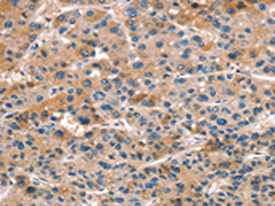 • The image on the left is immunohistochemistry of paraffin-embedded Human liver cancer tissue using CSB-PA192309(ALOX15 Antibody) at dilution 1/50, on the right is treated with synthetic peptide. (Original magnification: ×200)