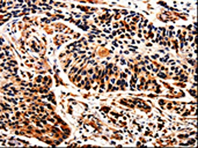 • The image is immunohistochemistry of paraffin-embedded Human esophagus cancer tissue using CSB-PA787659(ALOX5 Antibody) at dilution 1/25. (Original magnification: ×200)
