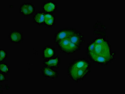 • Immunofluorescent analysis of MCF-7 cells using CSB-PA12639A0Rb at dilution of 1:100 and Alexa Fluor 488-congugated AffiniPure Goat Anti-Rabbit IgG(H+L)