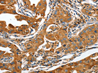 • The image on the left is immunohistochemistry of paraffin-embedded Human lung cancer tissue using CSB-PA005512(ANAPC10 Antibody) at dilution 1/40, on the right is treated with fusion protein. (Original magnification: ×200)