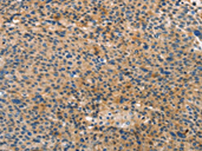 The image on the left is immunohistochemistry of paraffin-embedded Human liver cancer tissue using CSB-PA574741(ANXA10 Antibody) at dilution 1/35, on the right is treated with fusion protein. (Original magnification: ×200)
