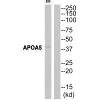 • Western blot analysis of extracts from 293 cells, using APOA5 antibody.