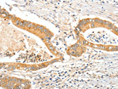 • The image on the left is immunohistochemistry of paraffin-embedded Human colon cancer tissue using CSB-PA780260(APOB Antibody) at dilution 1/15, on the right is treated with synthetic peptide. (Original magnification: ×200)
