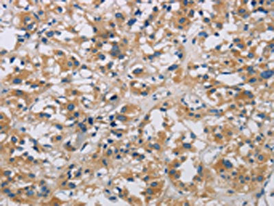 The image is immunohistochemistry of paraffin-embedded Human gastic cancer tissue using CSB-PA029843(ARF6 Antibody) at dilution 1/20. (Original magnification: ×200)