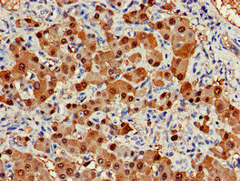 • Immunohistochemistry of paraffin-embedded human liver cancer using CSB-PA002005DA01HU at dilution of 1:100