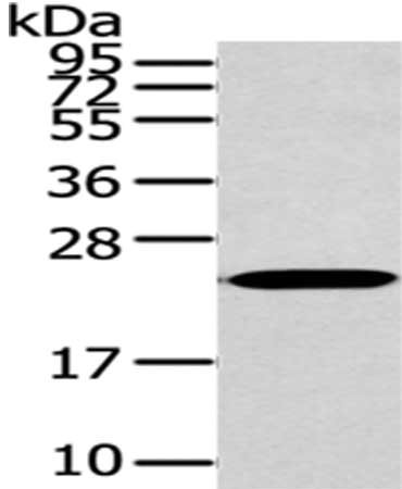 • Gel: 12%SDS-PAGE,Lysate: 40 μg,,Primary antibody: CSB-PA569844(ARL2 Antibody) at dilution 1/200 dilution,Secondary antibody: Goat anti rabbit IgG at 1/8000 dilution,Exposure time: 10 seconds