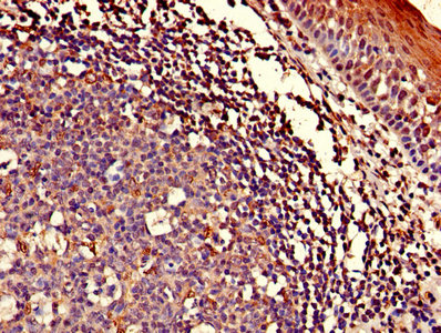 • Immunohistochemistry of paraffin-embedded human tonsil tissue using CSB-PA002196LA01HU at dilution of 1:100