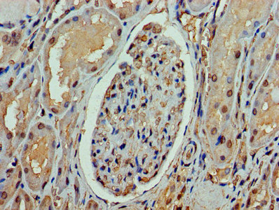 Immunohistochemistry of paraffin-embedded human kidney tissue using CSB-PA883363LA01HU at dilution of 1:100